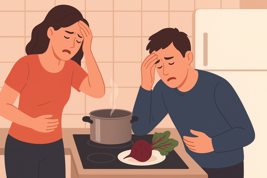 De fato, uma nutricionista relatou que cometeu um erro aparentemente inocente: deixou uma beterraba cozida em cima do fogão durante a noite para esfriar. Em seguida, ela e o marido acabaram no hospital com infecção intestinal.